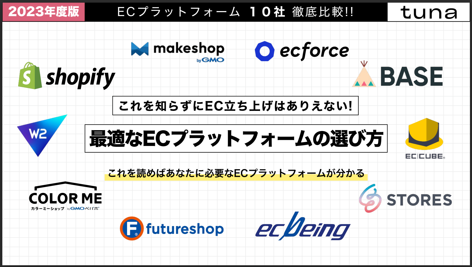 TUNAではそのようにお考えの方に向けて、「徹底比較!ECサイトプラットフォームカオスマップ」という無料でダウンロードできる資料を作成しました。